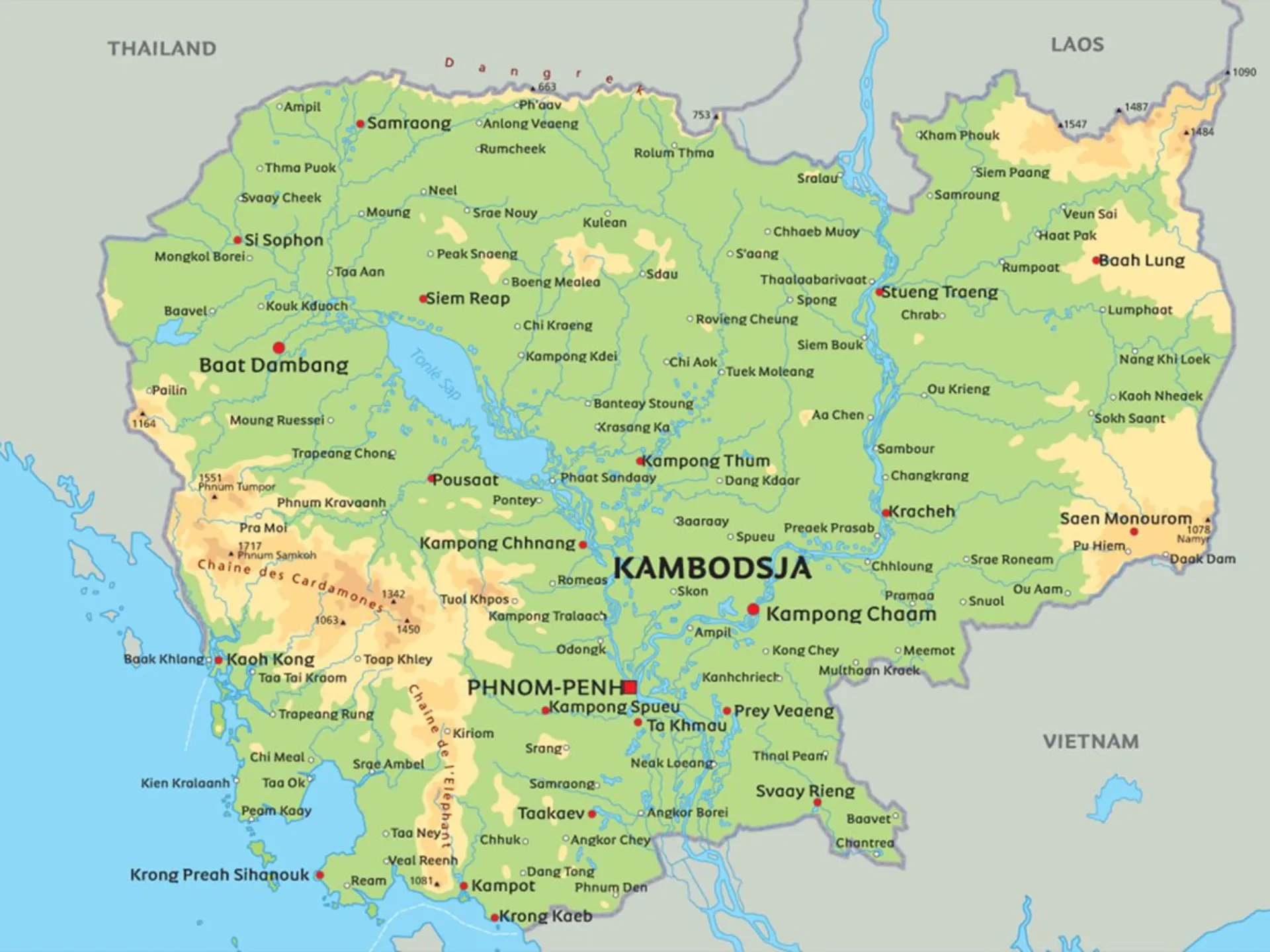 Nedenfor kan du se et kart over Kambodsja. Se blant annet plasseringen av Phnom Penh.
