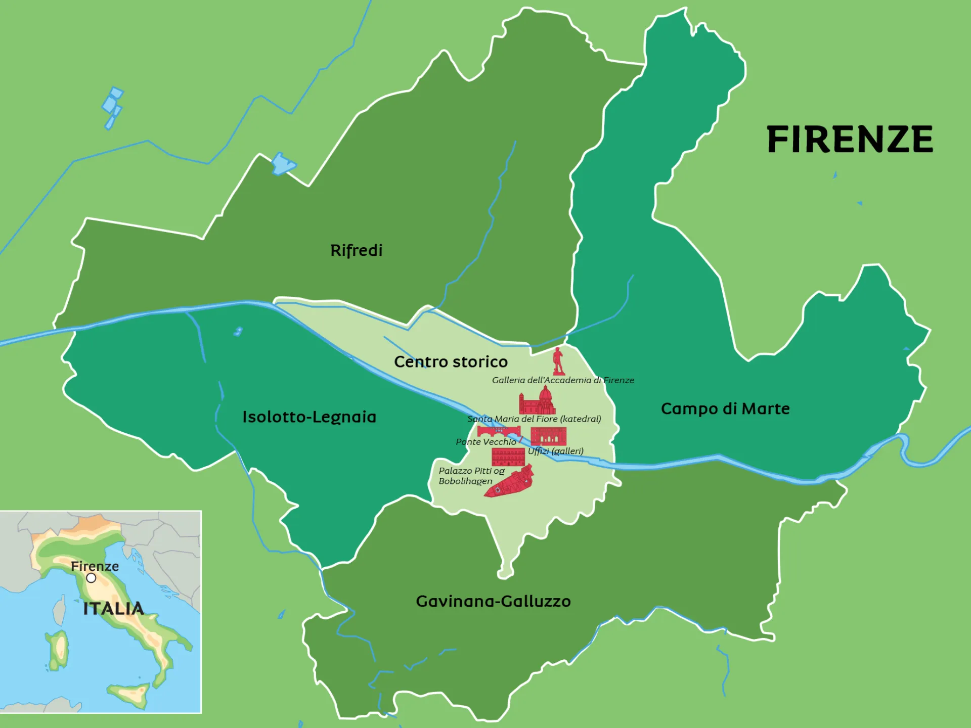Utforsk Firenze med dette bykartet. Du kan finne Basilica di Santa Maria del Fiore i hjertet av byen, eller utforske Uffizi-galleriet. Finn den ikoniske steinbroen Ponte Vecchio som går over elven Arno, se kunst på Galleria dell'Accademia, eller besøk Palazzo Pitti og Boboli-hagene på den andre siden av elven. Kartet er din guide gjennom byen. Så hvor kan du se Basilica di Santa Maria del Fiore? Sjekk det ut på kartet.