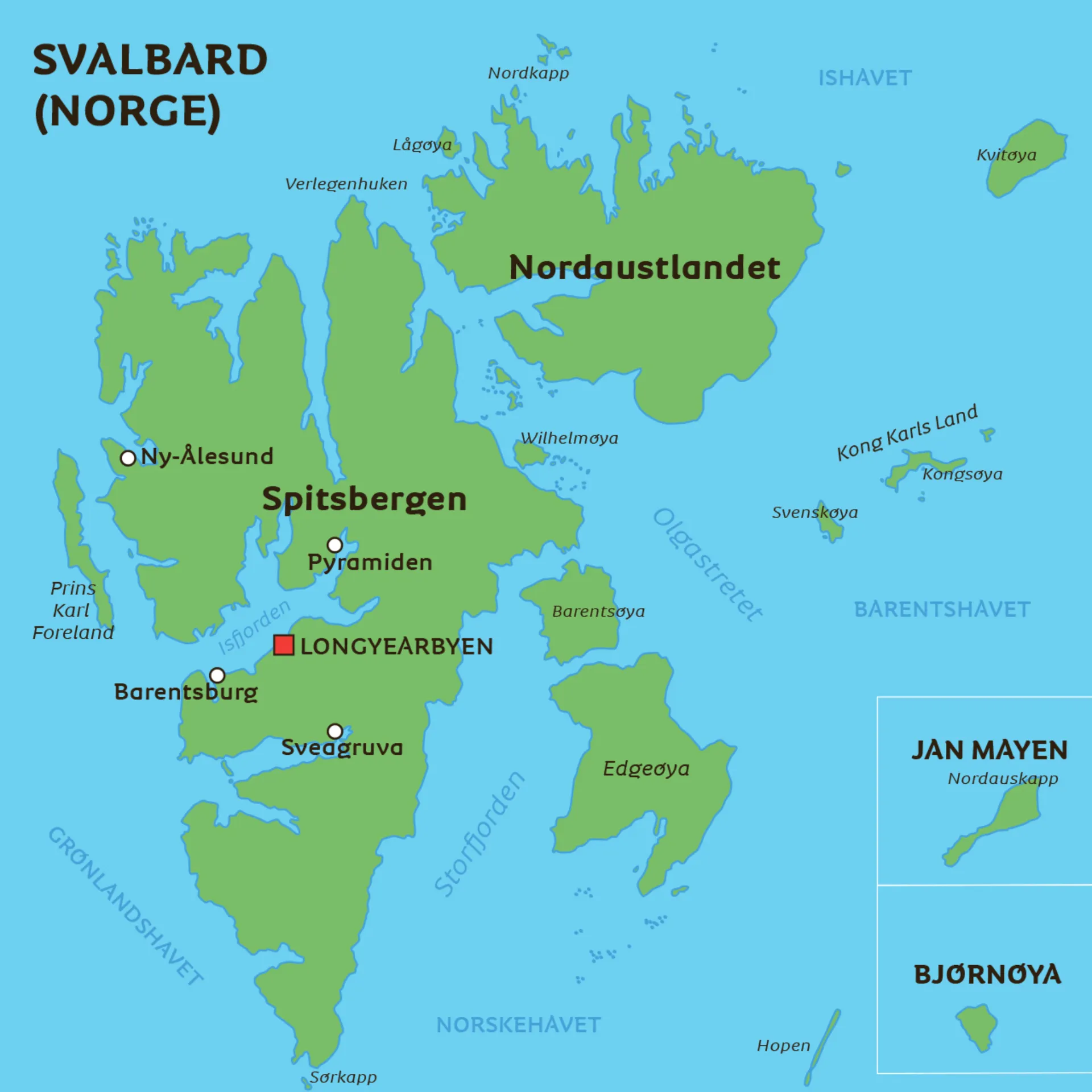 Her finner du et kart over Svalbard